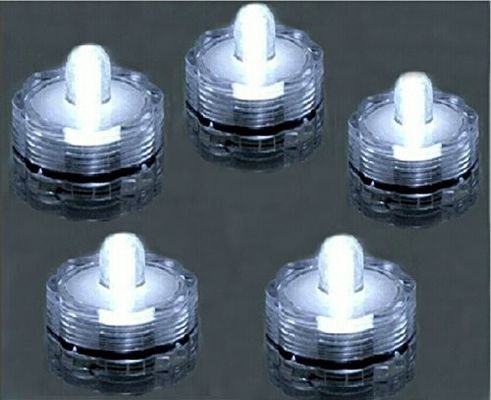 Lumières sous-marines submersibles BLANCHES toutes avec des batteries incluses. Tordez juste la lumière que c'est un interrupteur on/off facile avec les batteries remplaçables. Les batteries sont facilement remplaçables (batteries CR2032 standard.) Temps durable plus de 48 heures. La taille de ces lumières sont 1" grand et de 1 1/4" à travers. Employez les lumières n'importe où que vous voulez ajouter la couleur - mariages, les aquariums, la piscine, les fêtes d'anniversaire ou juste l'utilisation quotidienne dans votre maison.